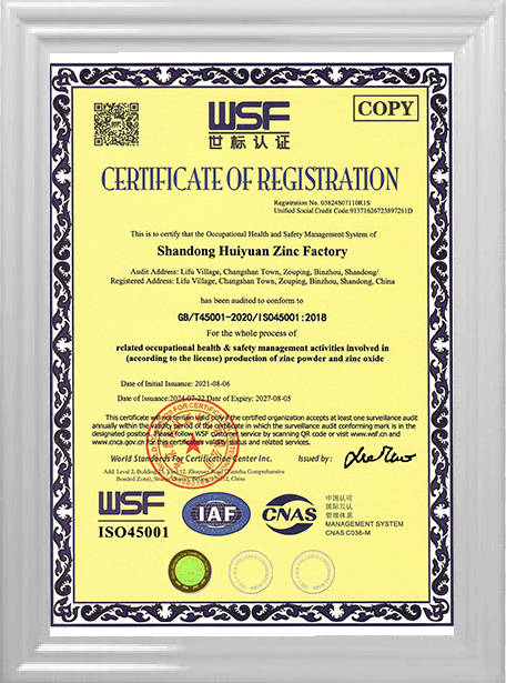 Shandong Huiyuan Zinc Factory,founded in 2000,is located in Zouping,one of the top ten county economies in China.Near Jinan International Airport and Jinan-Qinghai High-Speed Rail,it enjoys superior geographical position and convenient transportation conditions.Our factory specializes in the produc